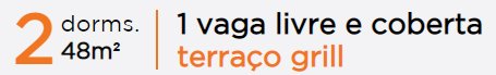 | Tipologia | 48,04m² – 2 dorms. | Terraço Grill | 1 vaga |